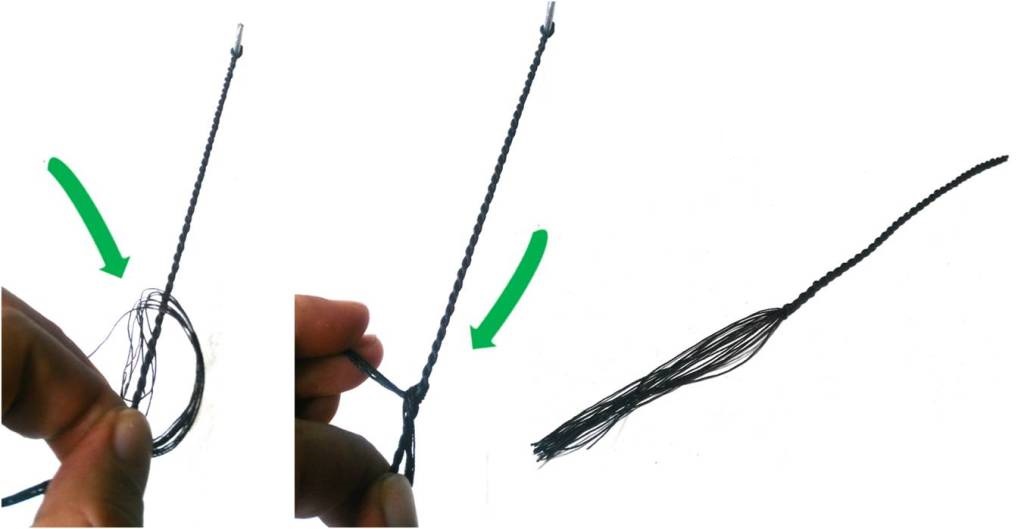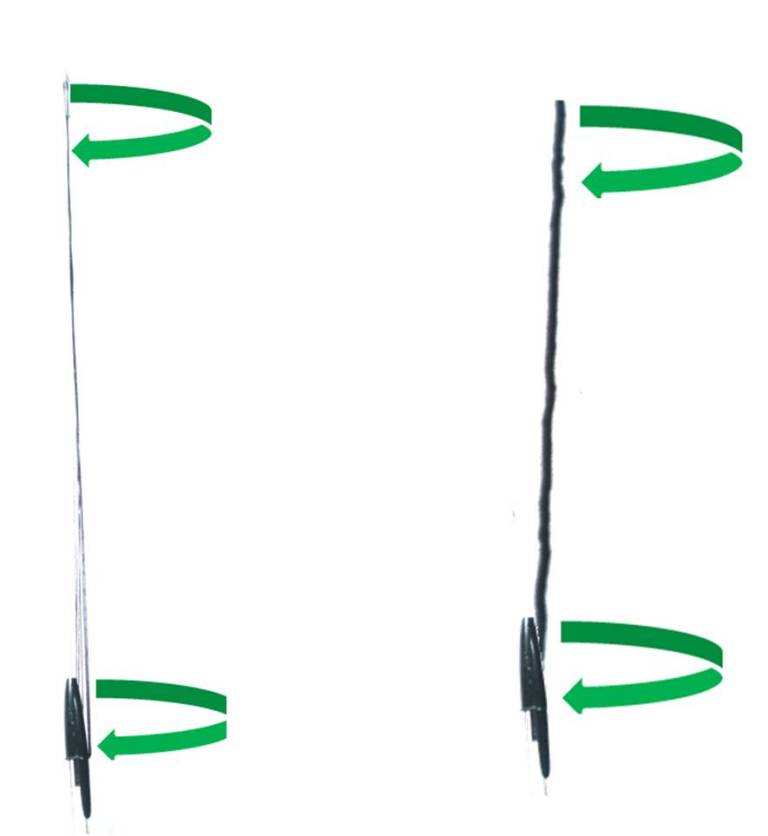 - Holding the joining joints of the two strands with your hands, turn the rope that is created and put it in the hook at the bend point