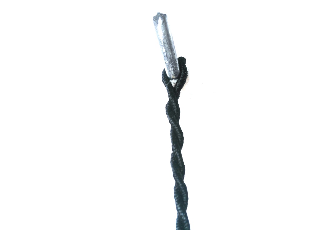 - When the lace is twisted, fold the piece of string in half and it will twist up on itself and form a tight loop at one end.
